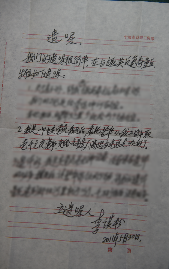 李謨松生怕他的愿望被疏忽或遺忘,趁他還能動筆的時候,就悄悄地在遺囑里面寫下了去世后向黨組織交納1000元黨費的心愿。2018年2月,彌留之際的李謨松拉著老伴的手說:“別忘了向黨組織交納我的黨費……”李謨松去世后,他的老伴才發(fā)現(xiàn)他的叮嚀和囑托不僅僅是口頭的交代,而且還寫進了遺囑,是真情實意對黨恩情的一片流露,感動的她兩行熱淚奪眶而出……她心里默默地說,老李,放心,我一定把你的遺愿向黨組織表達,實現(xiàn)你刻在骨子里的愿望。