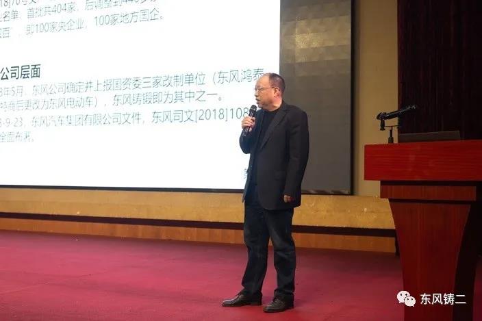年會以“新時代、新發展、新理念”為主題。東風鍛造有限公司總經理高瑞朝就現國有企業的改革問題,做了以“探求改革新思路,謀求企業新發展”為主旨演講。他指出,東風鍛造有限公司積極響應國家號召,以國家文件的要求,深入貫徹落實“雙百行動”的國有企業改革方案,打出“五突破,一加強”的組合拳,主動融入市場競爭,提高公司的利潤率。他強調,提高員工持股比例是改革的重要一環,員工持股比例的增加,對提高員工工作積極性和創新水平有重要的推進作用。